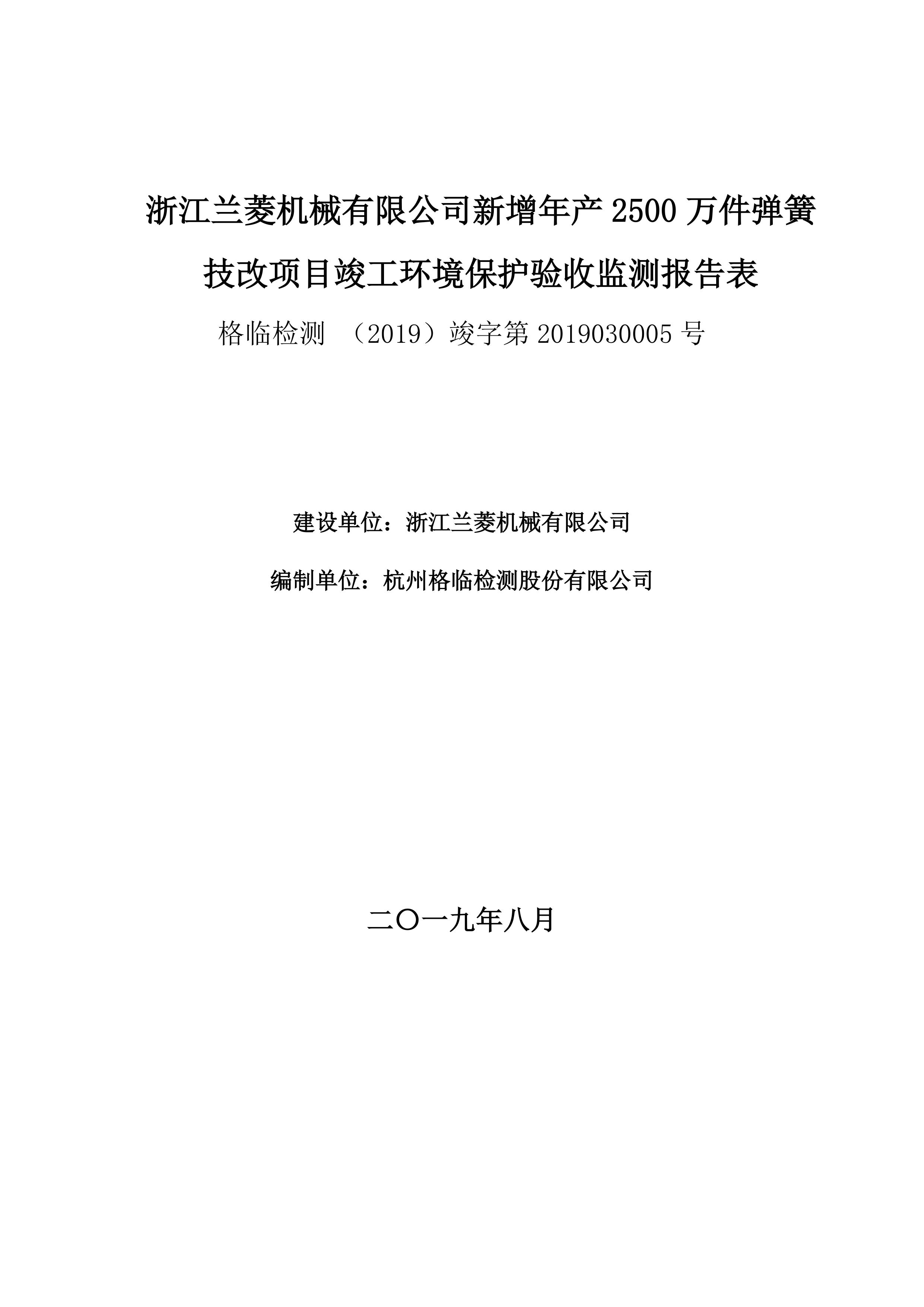 委托書號181301竣字2019030005號浙江蘭菱機(jī)械有限公司新增年產(chǎn)2500萬件彈簧技改項目“三同時”竣工環(huán)境保護(hù)驗收監(jiān)測報告表